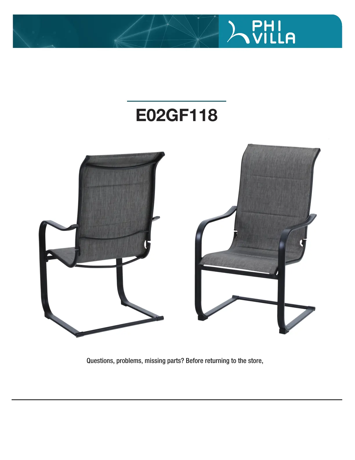 Questions, problems, missing parts? Before returning to the store,