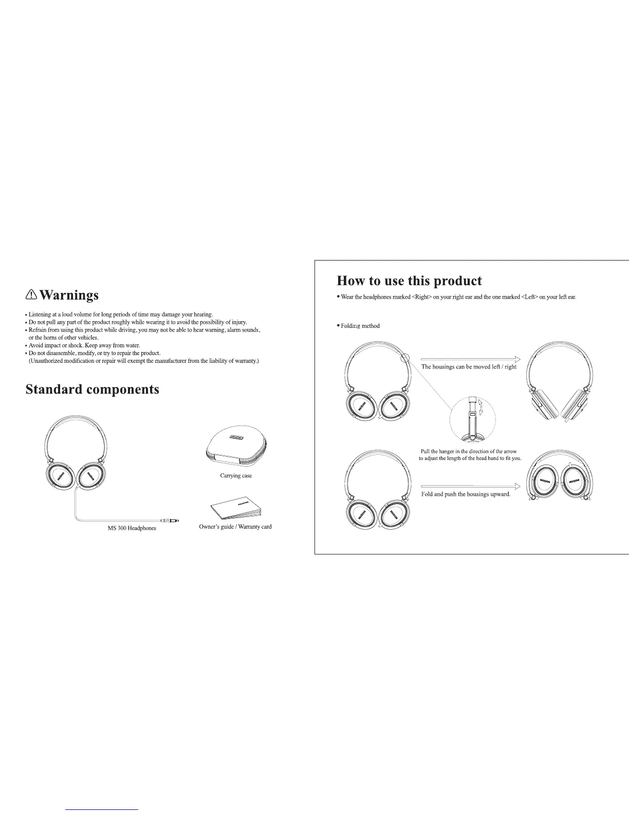Phiaton MS 300 - Warnings; Safety Precautions; Standard Components; Included Accessories