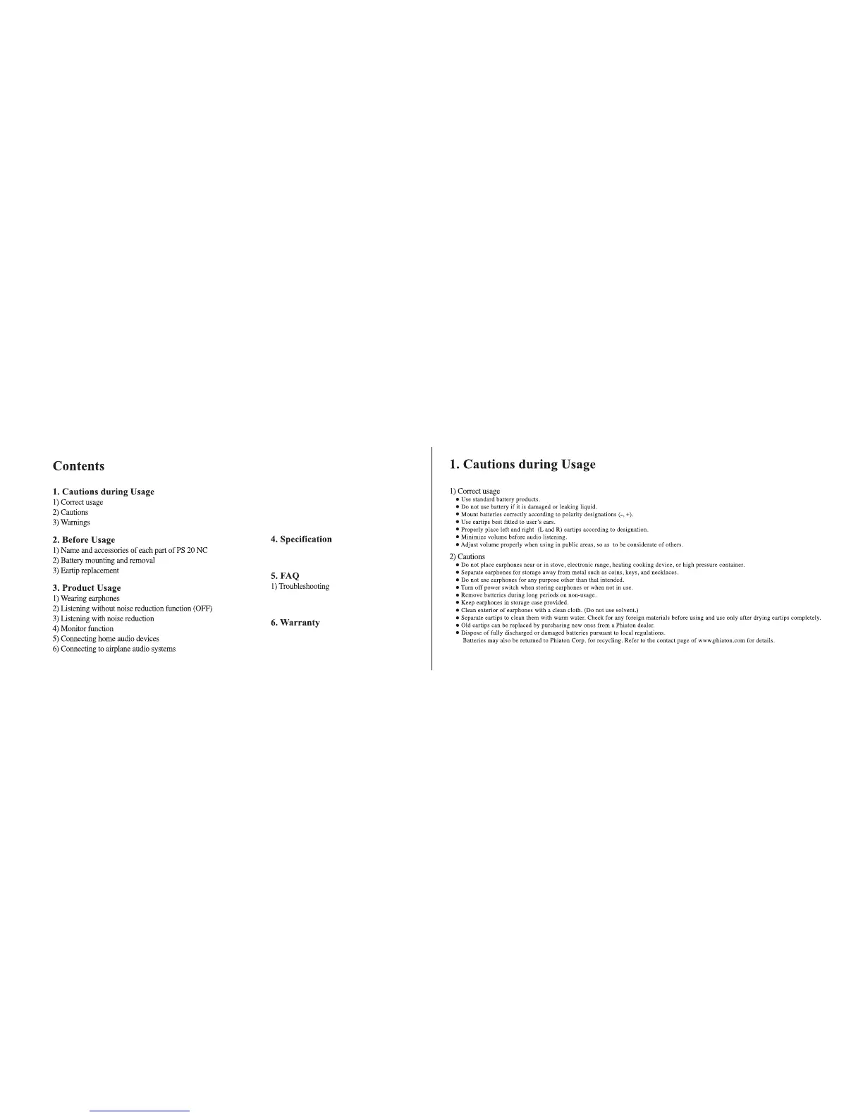Phiaton PS 20 NC - Cautions During Usage; Correct Usage; Cautions; Warnings