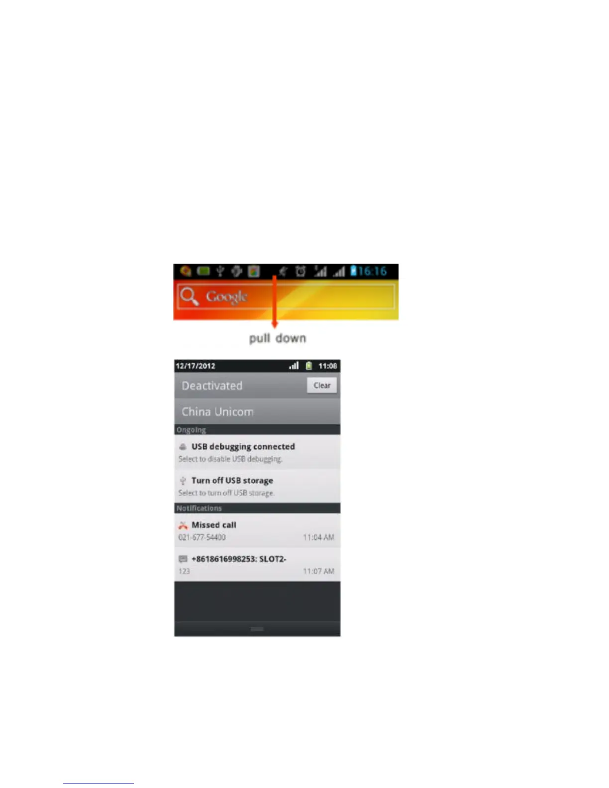 Seeing new notificaiton icon on the status bar, press and hold