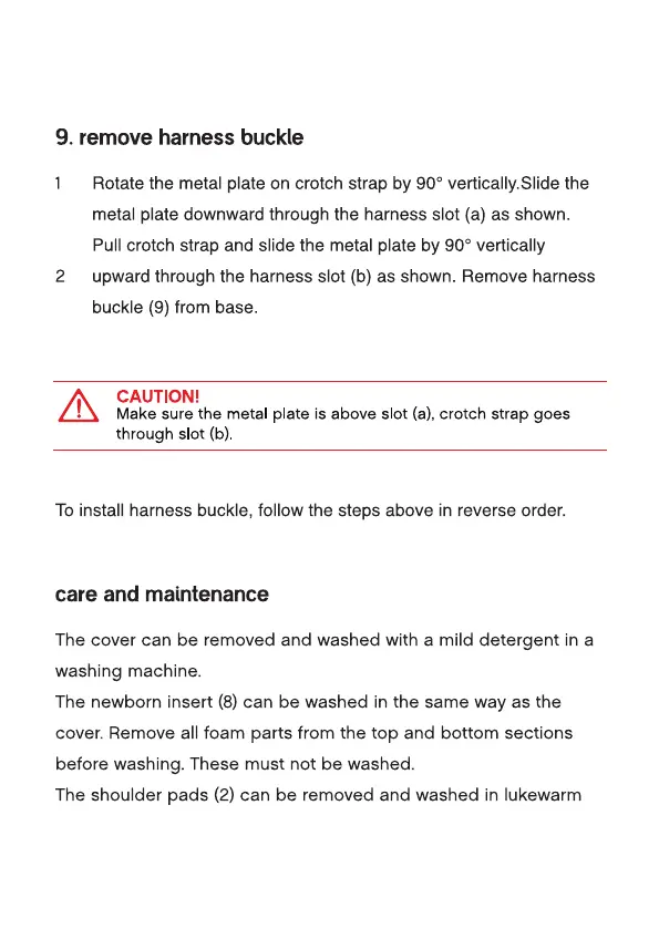 Phil&Teds alpha - Harness Buckle Procedures; Infant Seat Cleaning