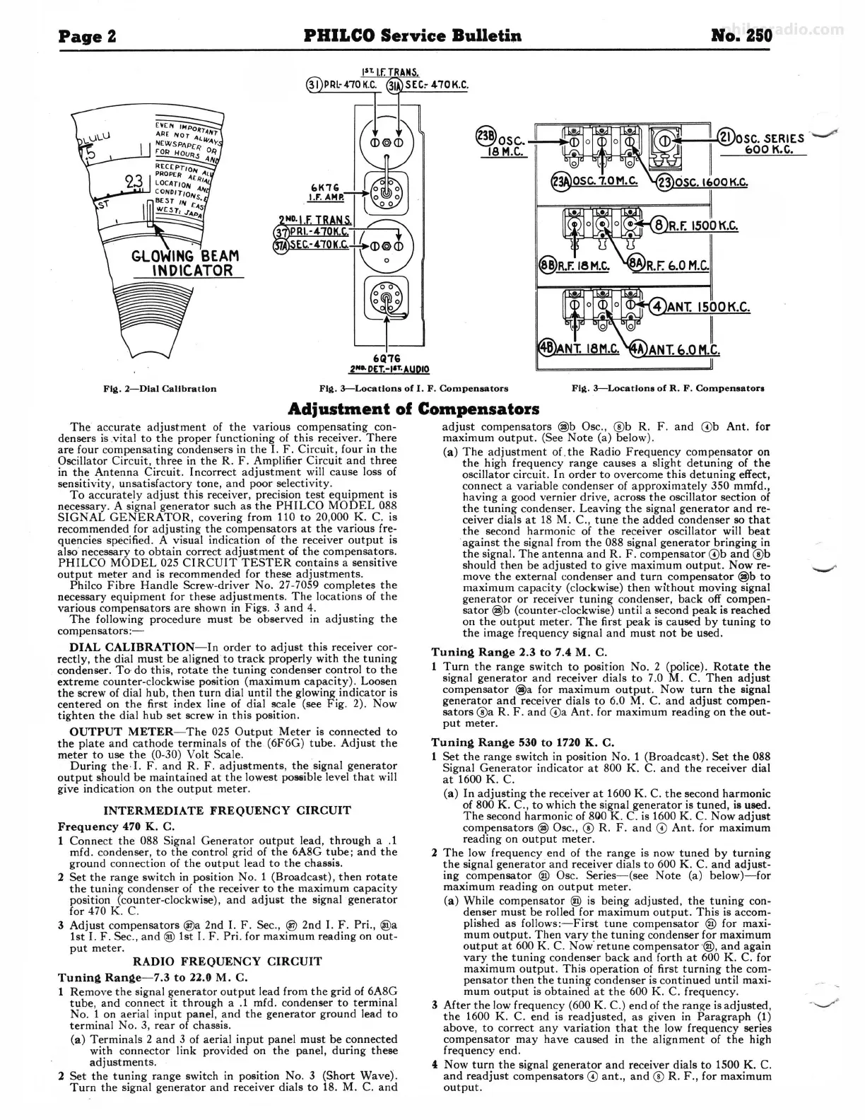 3 Adjust compensators @a 2nd I. F. Sec., @ 2nd I. F. Pri ., @a