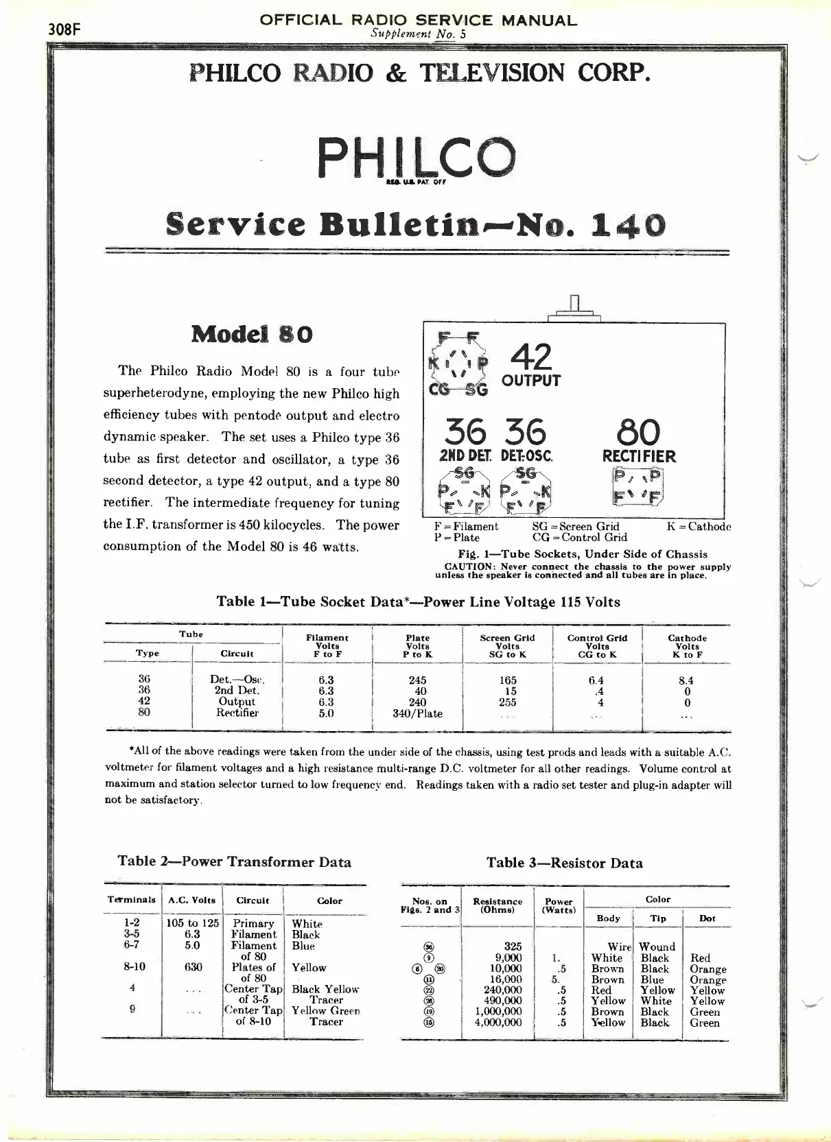 Table 1-Tube Socket Data*-Power Line Voltage 115 Volts