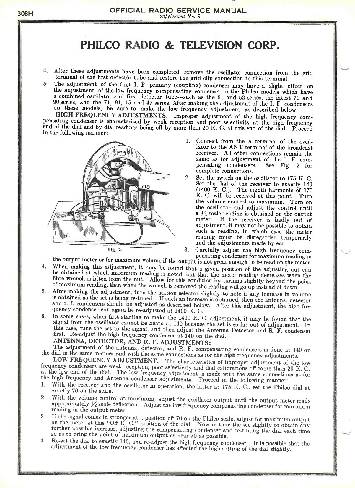 the adjustment of the low frequency compensating condenser in the Philco