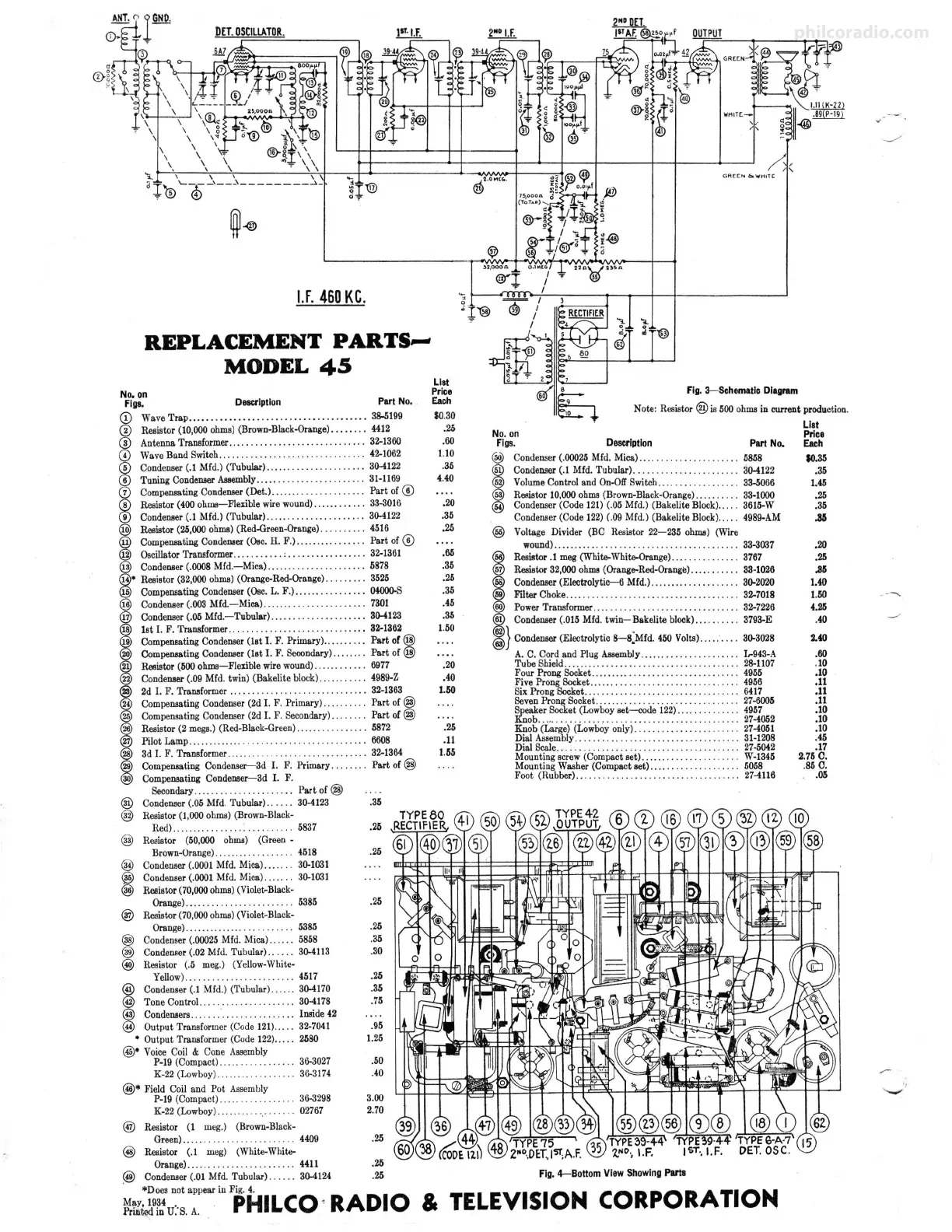 @ Condenser (.01 Mfd. Tubular) . ..... 30-4124 .25 Fig. 4-Bottom View Showing Pll'l8