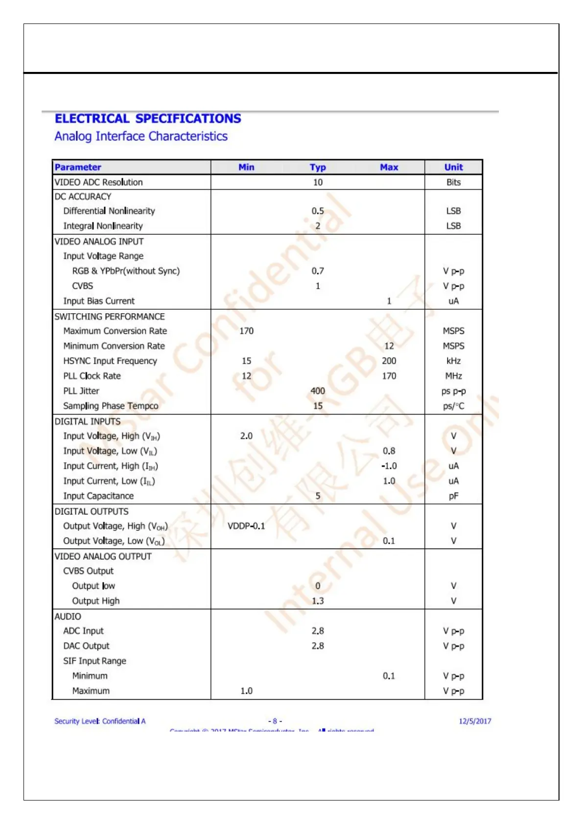 Philco 7M31B - Electrical Specifications; Analog Interface Characteristics