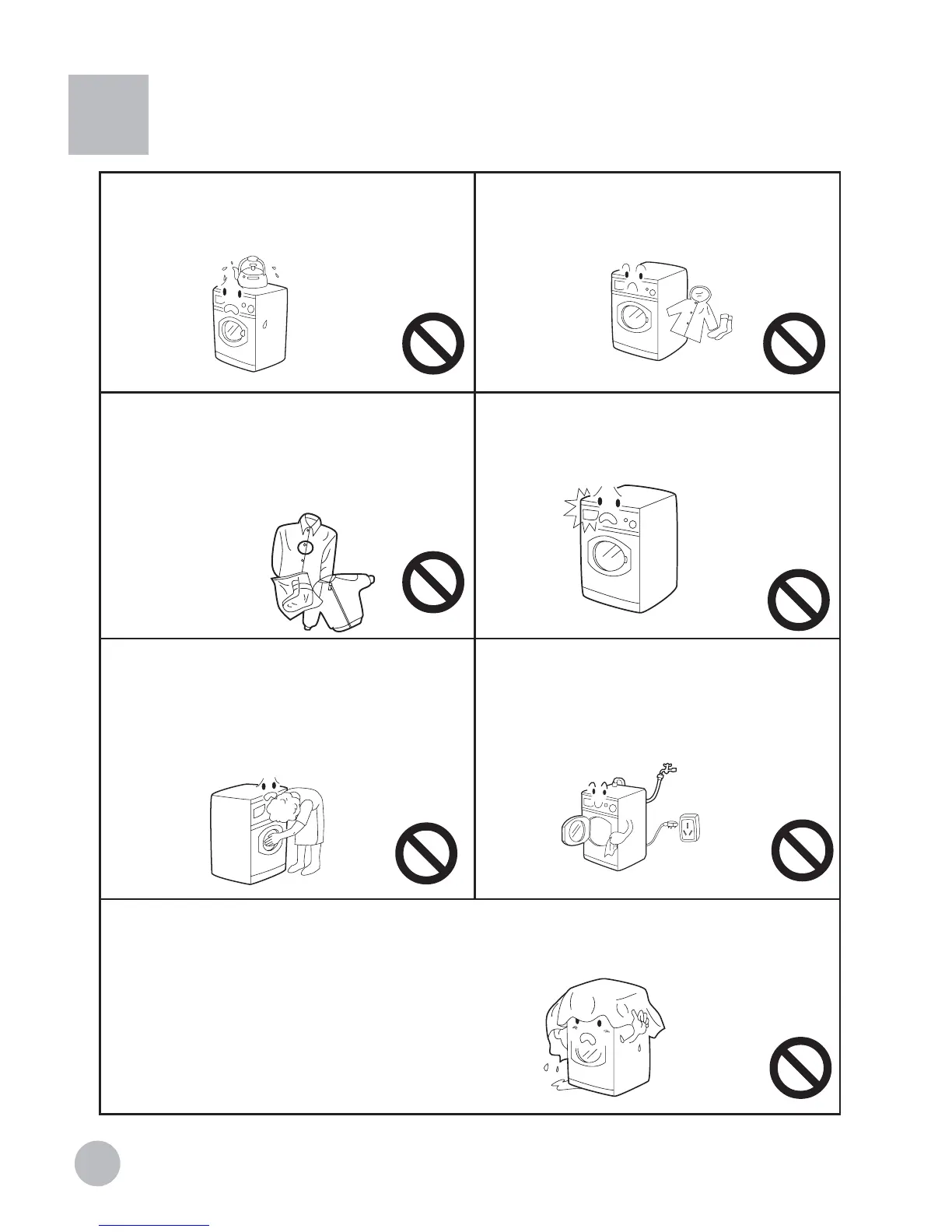 9. Keep the door slightly open when the washing machine is not being used. Never cover the