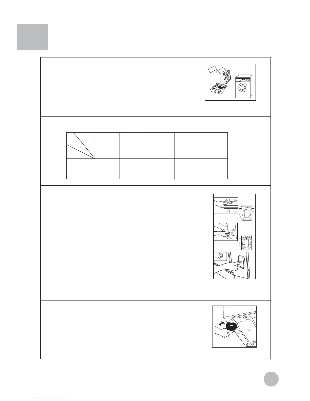 justable feet under the bottom of the washing machine. Before use,