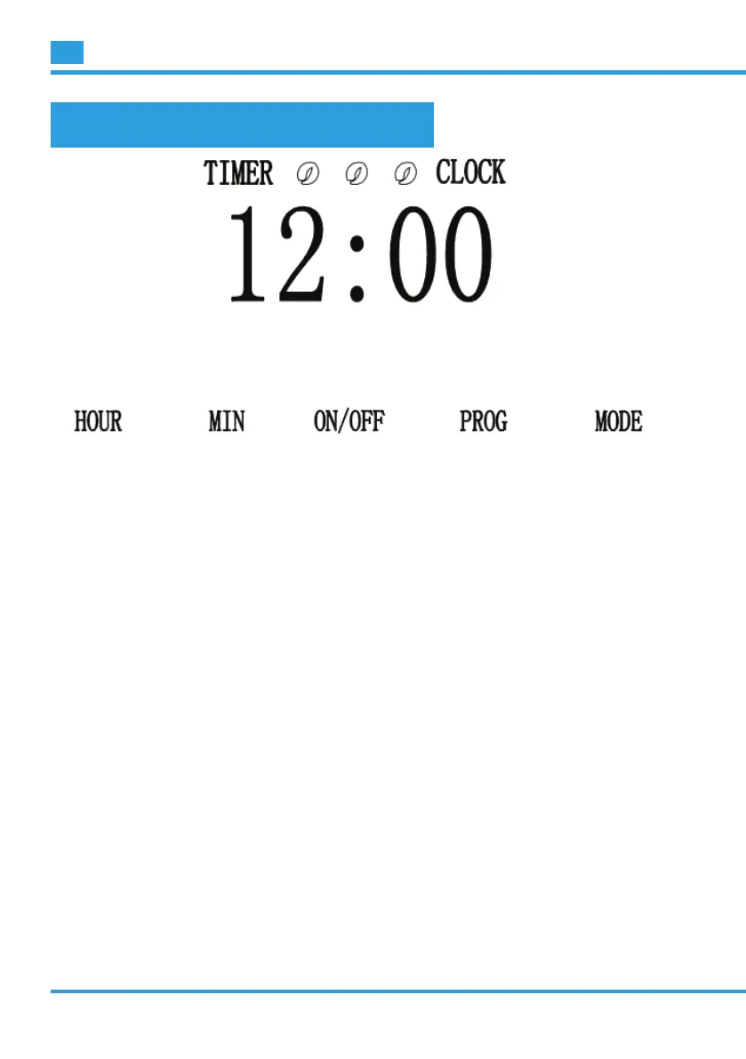 6. Press any key, the display will show 12:00.Press down ON/OFF button once, the red indicator is
