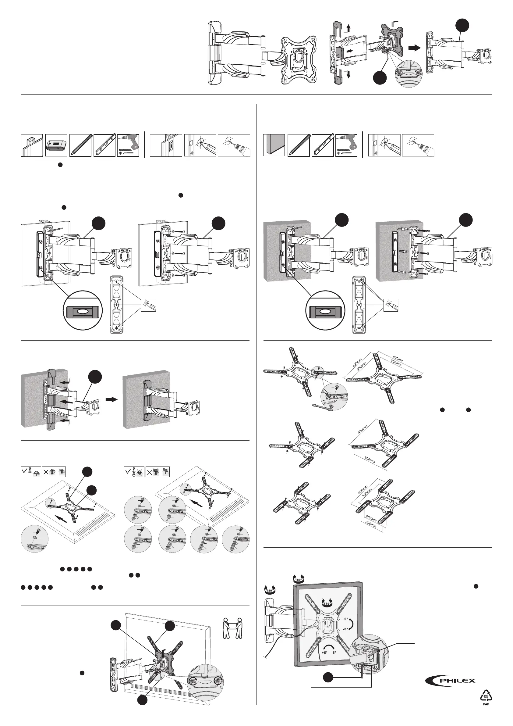 correct size to hold the bracket securely in position). When fixing to walls screws/bolts should be fixed