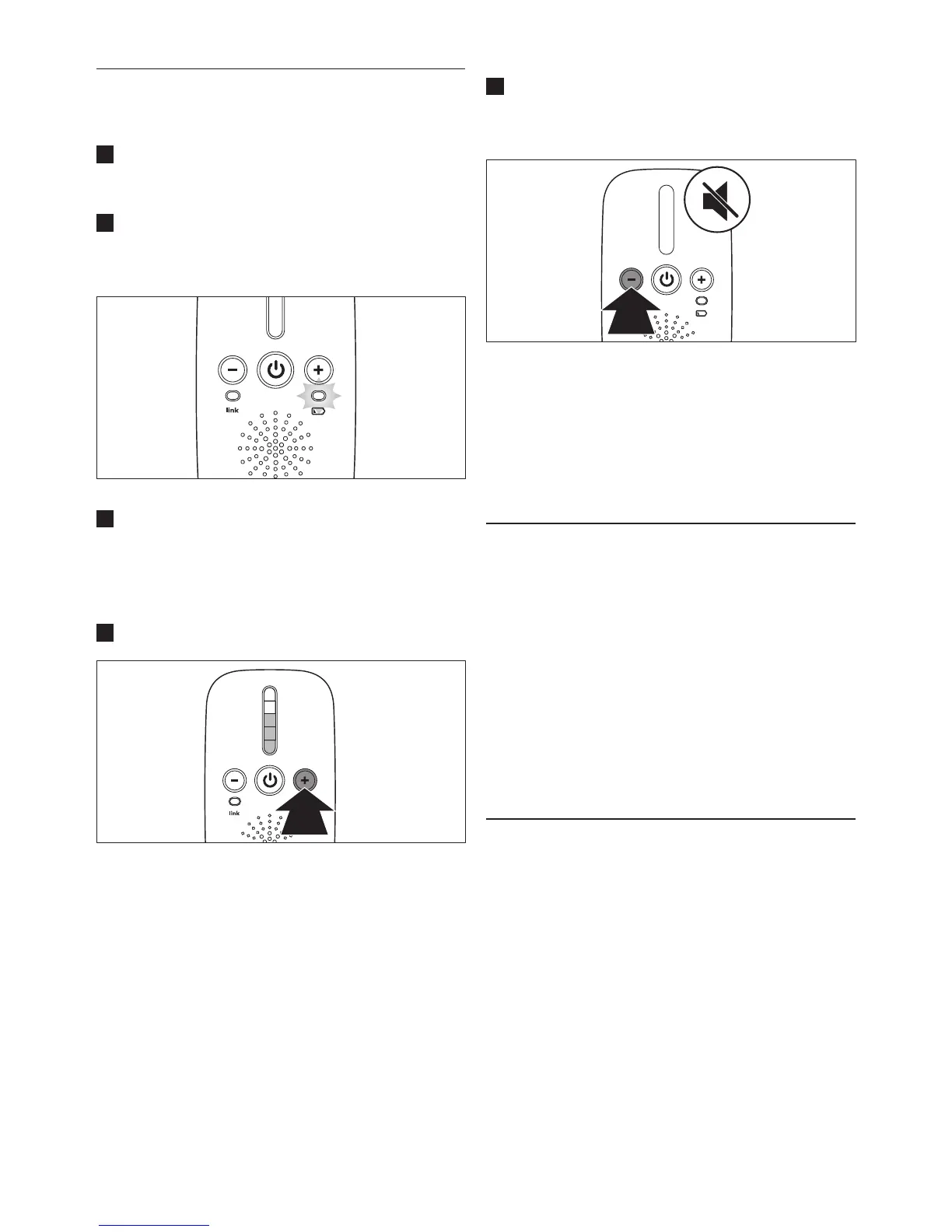 1 Tryk på knappen + for at øge lydstyrken.