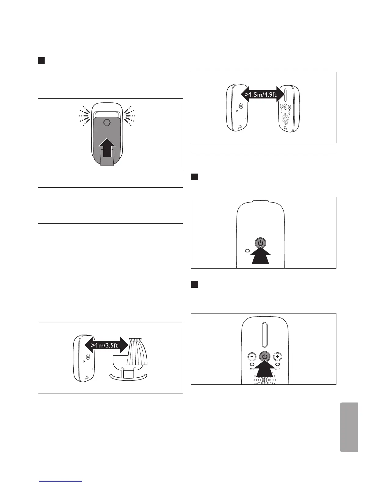 1 Håll knappen 3 på babyenheten nedtryckt i