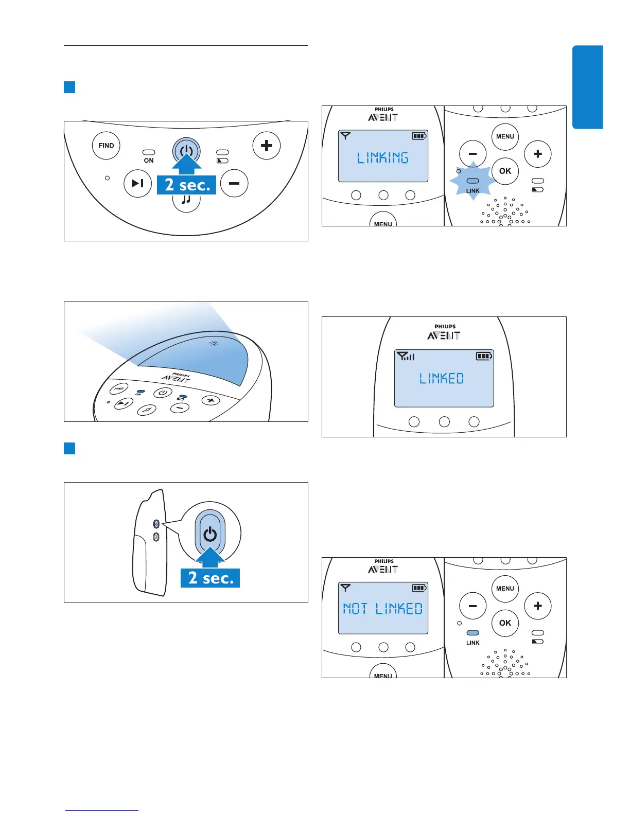 • The ‘link’ light on the parent unit starts