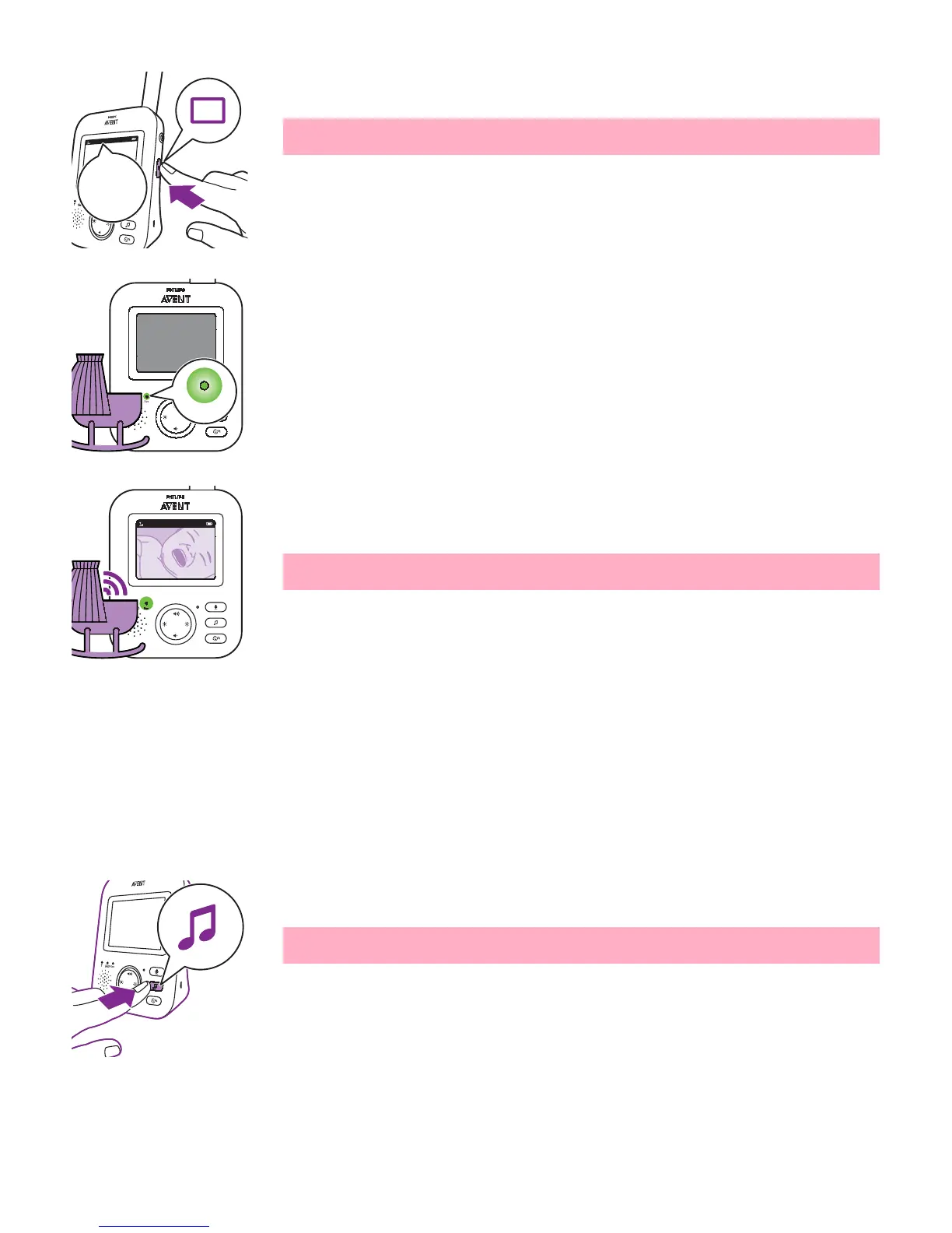 To activate the lullaby feature from the parent unit, follow the instructions