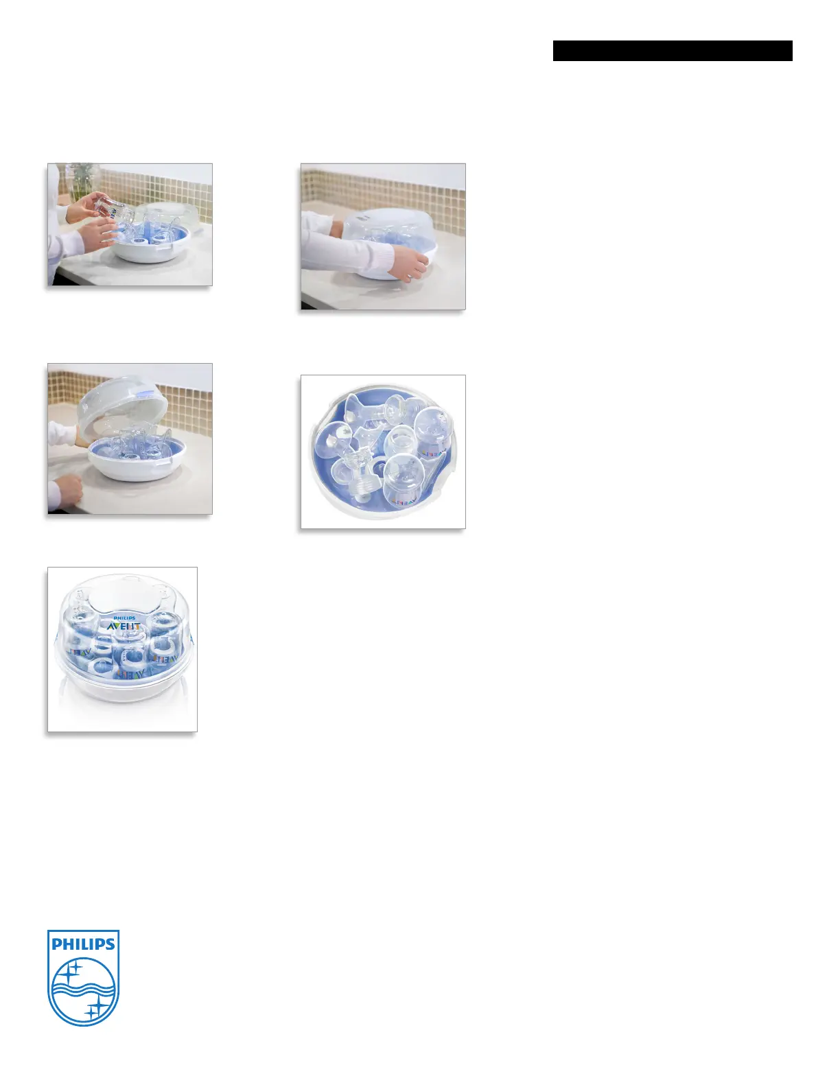 Holds up to six 260 ml/ 9oz AVENT Bottles or two