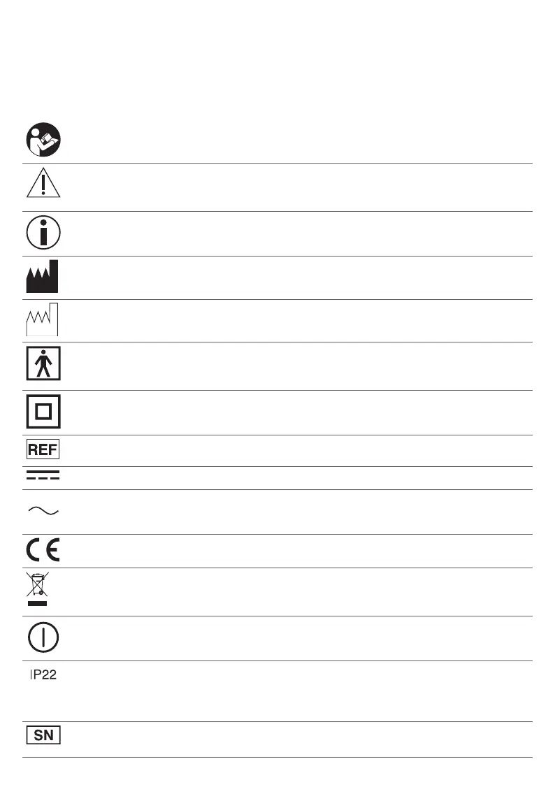 Prikazuje proizvajalca, kot določa standard IEC 60601-1, ki vsebuje referenco za standard