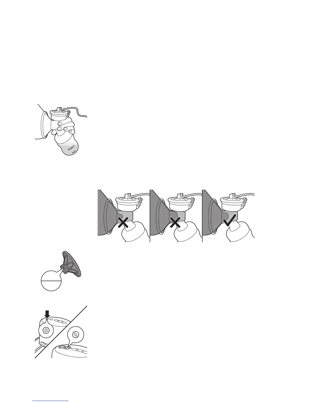 3 Pressione o extrator de leite (encaixado) contra o seio. Verifique se o seu