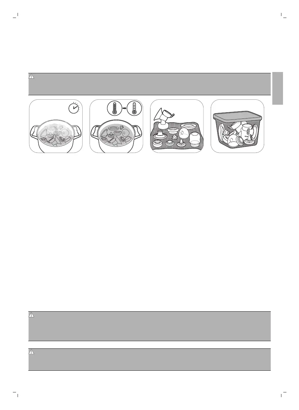 Attention : Lors de la désinfection à l'eau bouillante, veillez à éviter que le biberon ou