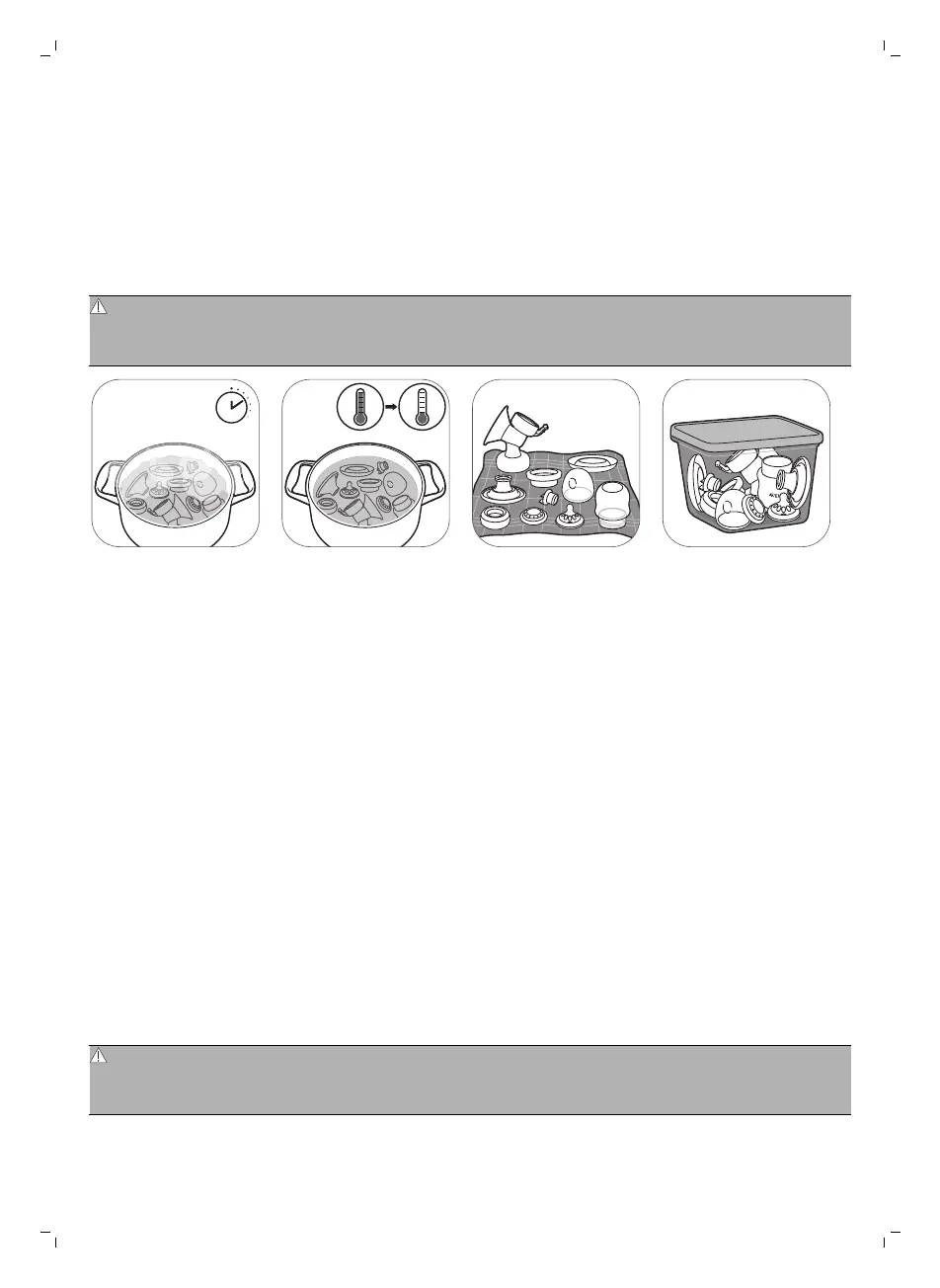 Uyarı: Dikkat edin, göğüs pompası parçalarını kaynatıp dezenfekte ettikten sonra çok