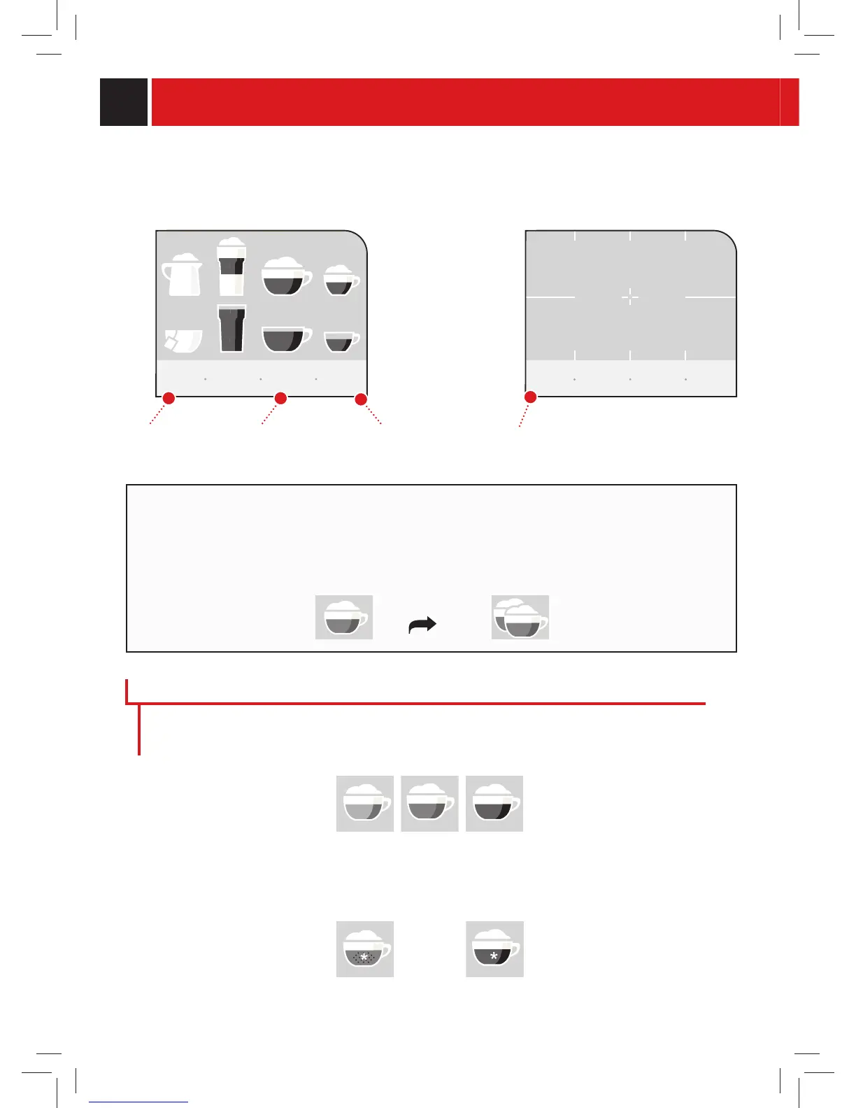 The intensity of the color on the cup icon (only valid for coffee beverages) indicates the aroma, or