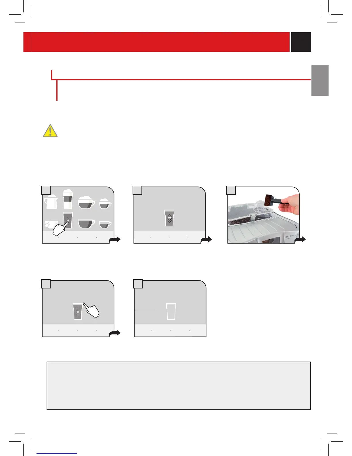 hopper. Pour in only coffee ground for espresso machines and never coffee beans or instant coffee. (see the