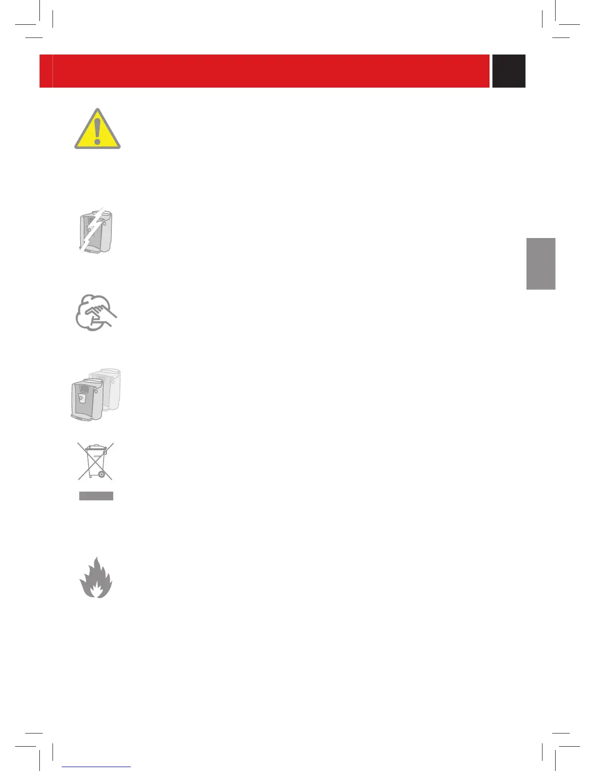 • Attention : risque de brûlures lors du contact avec l'eau chaude, la vapeur et la buse d'eau chaude.