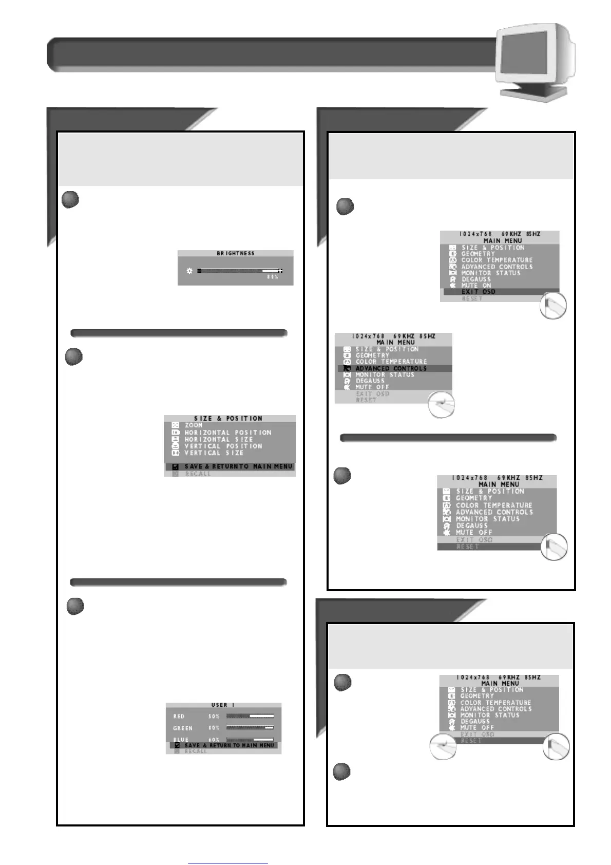 from the monitor screen. Resetting from the On Screen Display returns