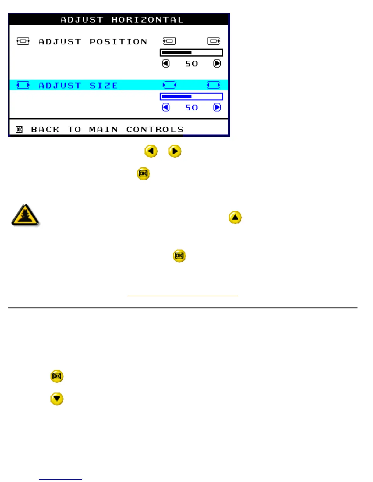 6) To adjust the horizontal size, press the or button.