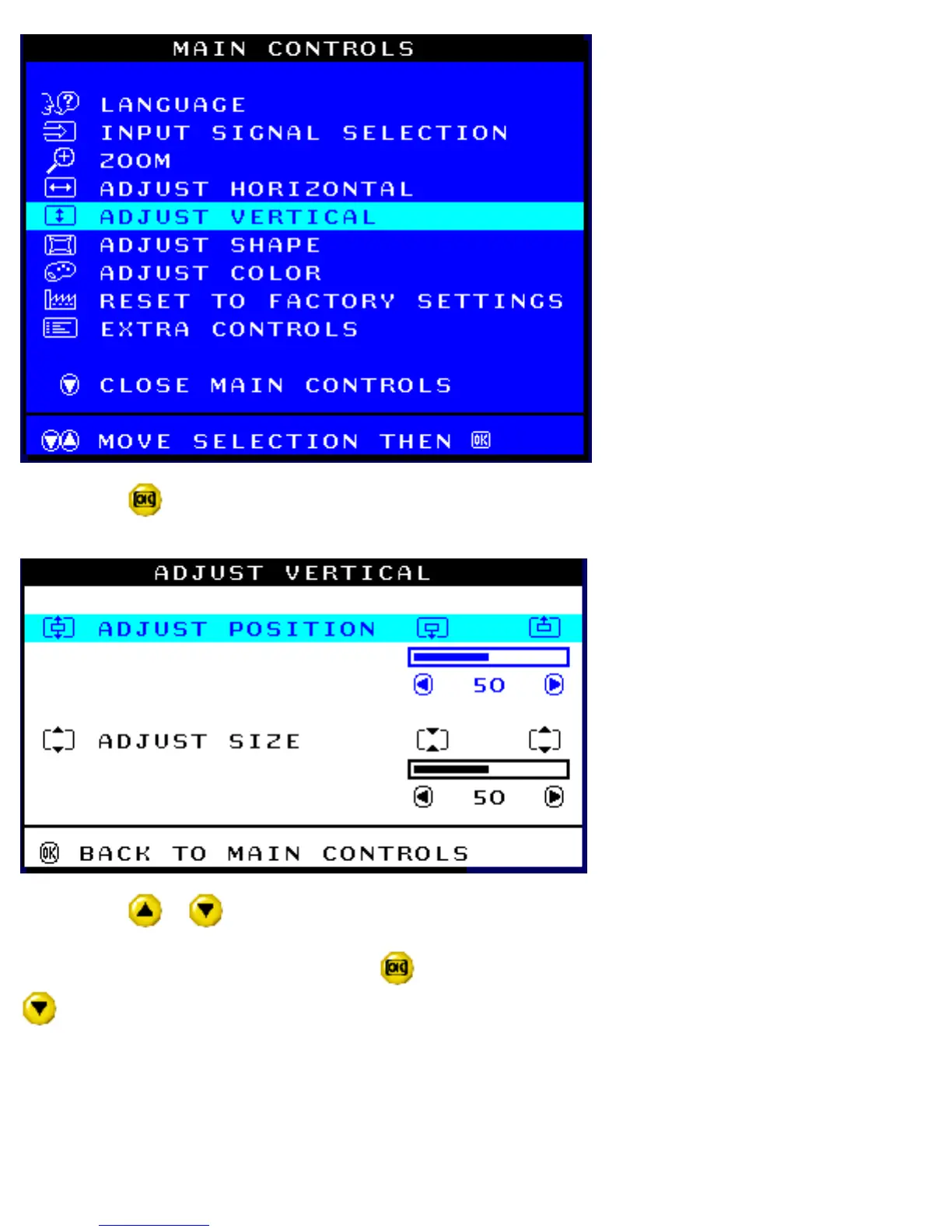 3) Press the button. The ADJUST VERTICAL window appears. ADJUST POSITION should be