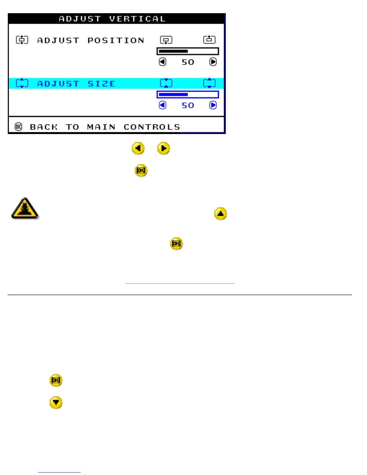 6) To adjust the vertical size, press the or button.