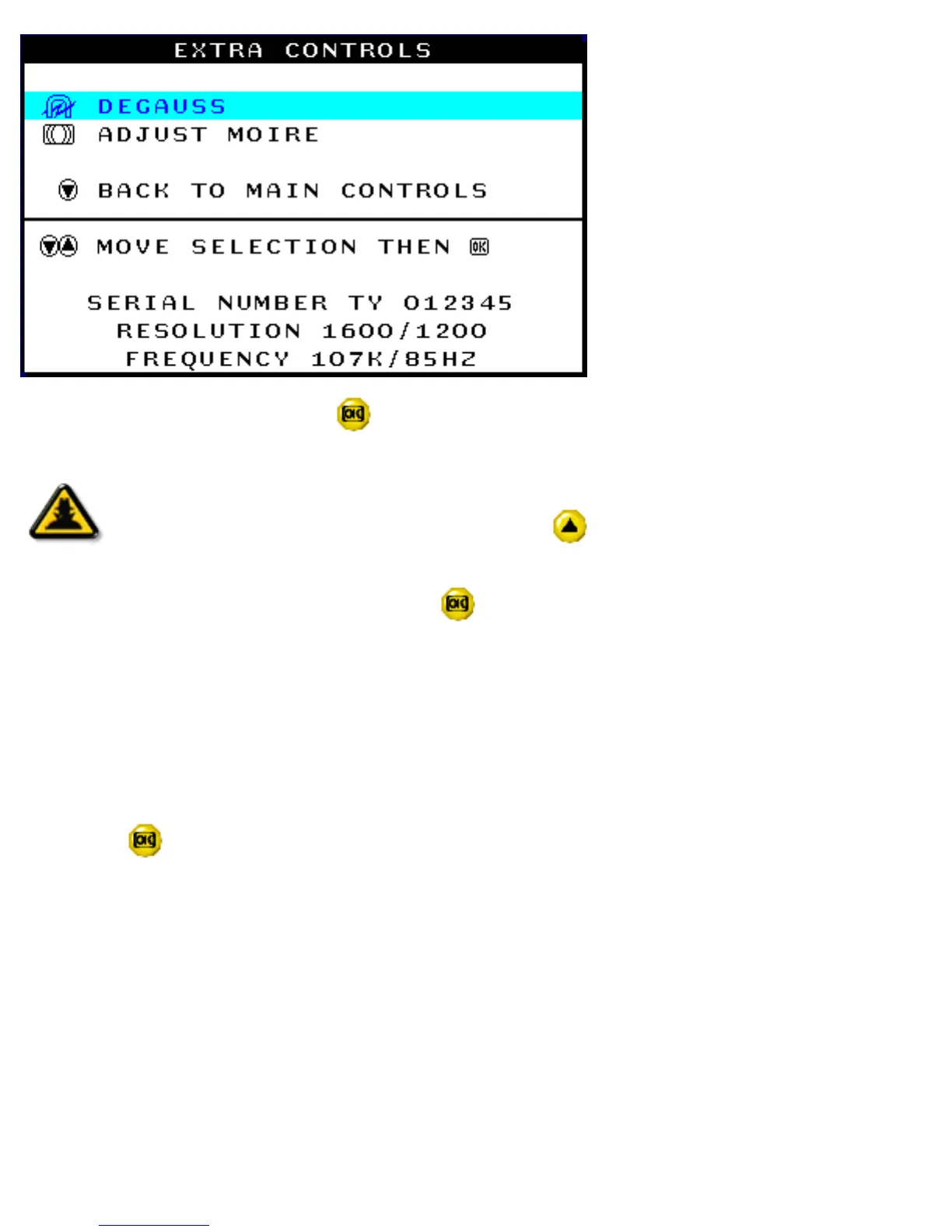 4) To degauss your screen, press the button. Your screen will be degaussed, then the MAIN