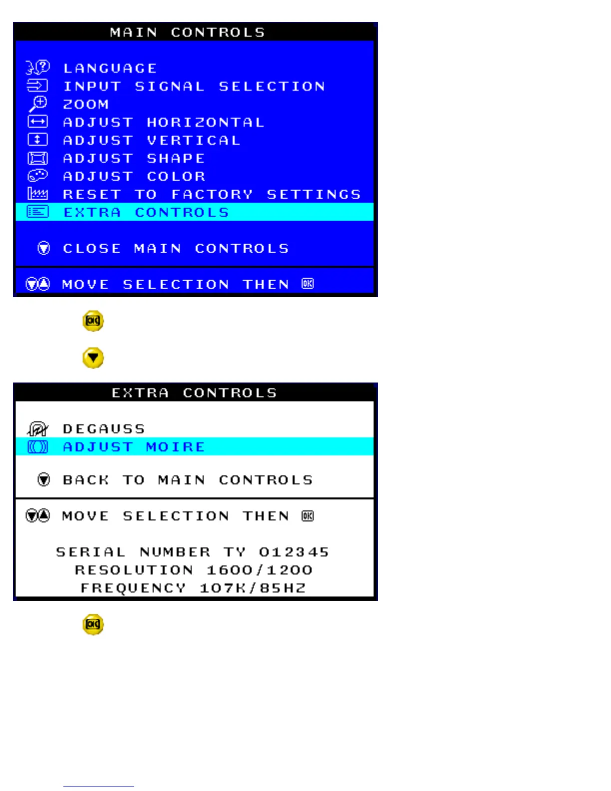 3) Press the button. The EXTRA CONTROLS window appears. DEGAUSS will be highlighted.