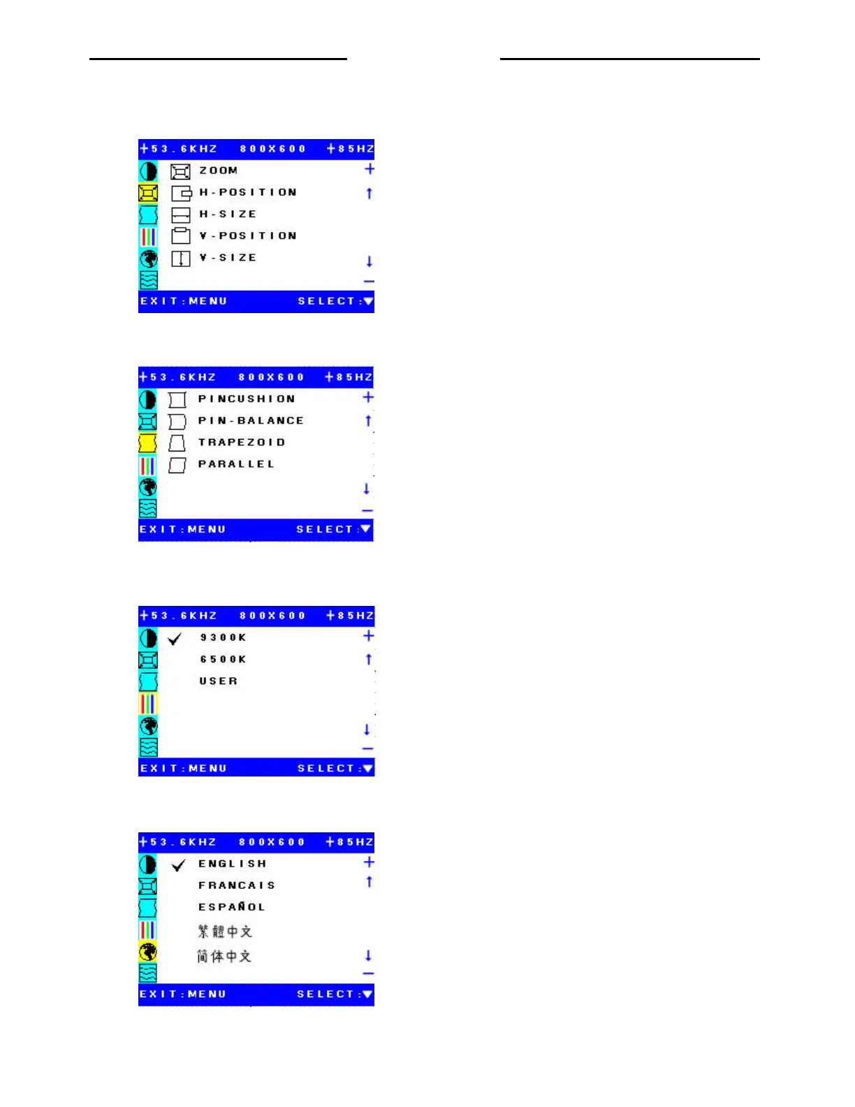 Traditional Chinese: Selectable traditional Chinese language menu.