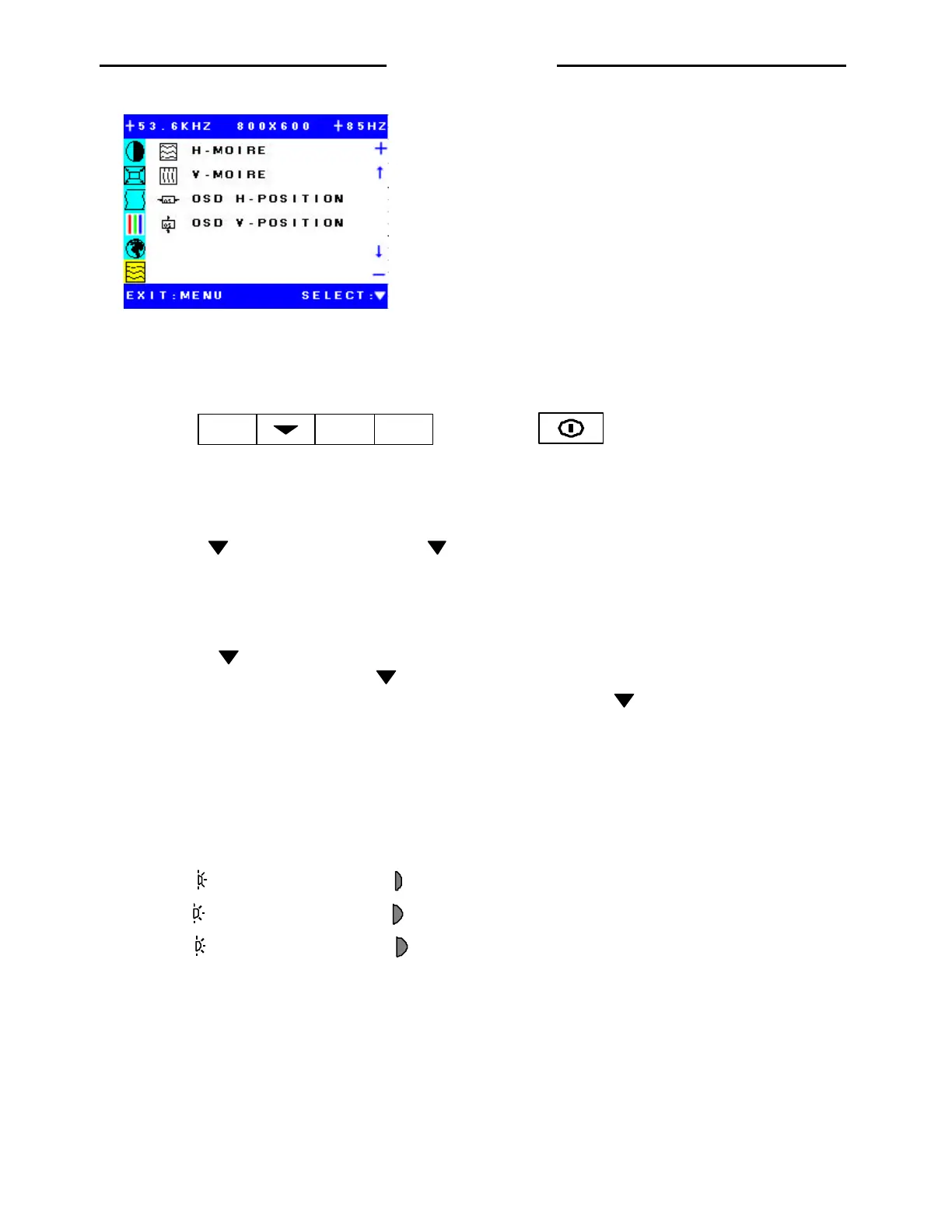 to each menu and for adjusting decrease and increase , respectively. After press to enter to each function in