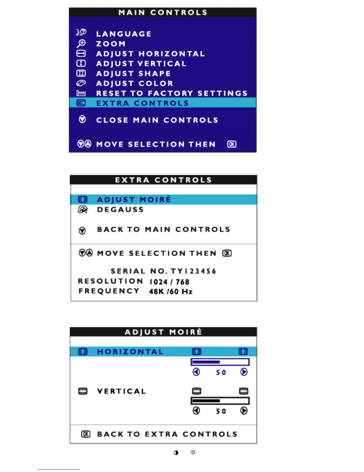 3) Press the MENU button. The EXTRA CONTROLS window appears. ADJUST MOIRE will be