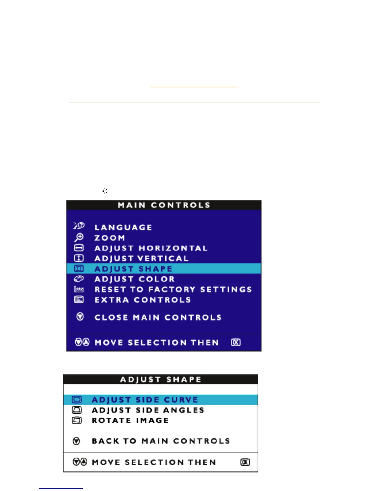 3) Press the MENU button. The ADJUST SHAPE window appears. ADJUST SIDE CURVE