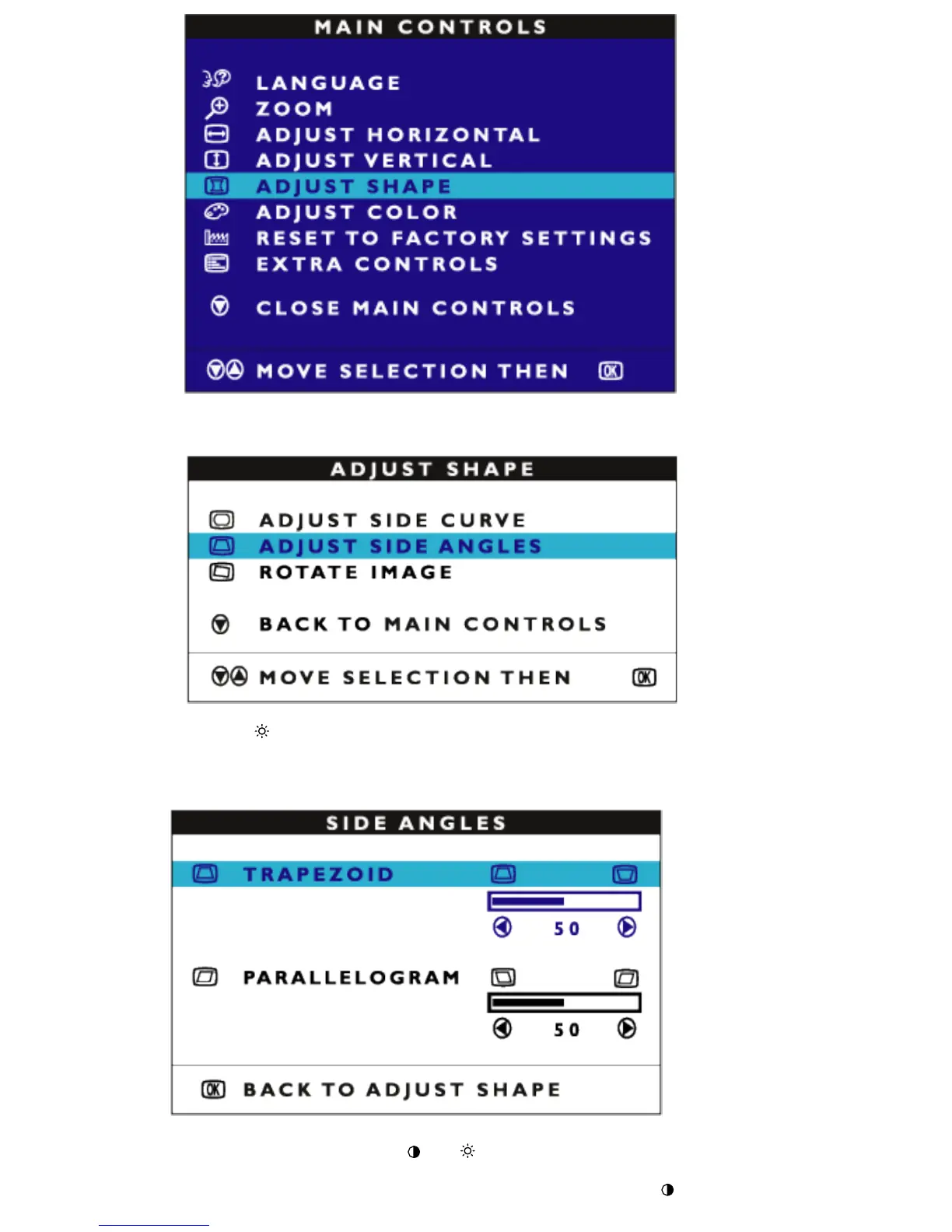 3) Press the MENU button. The ADJUST SHAPE window appears. ADJUST SIDE CURVE