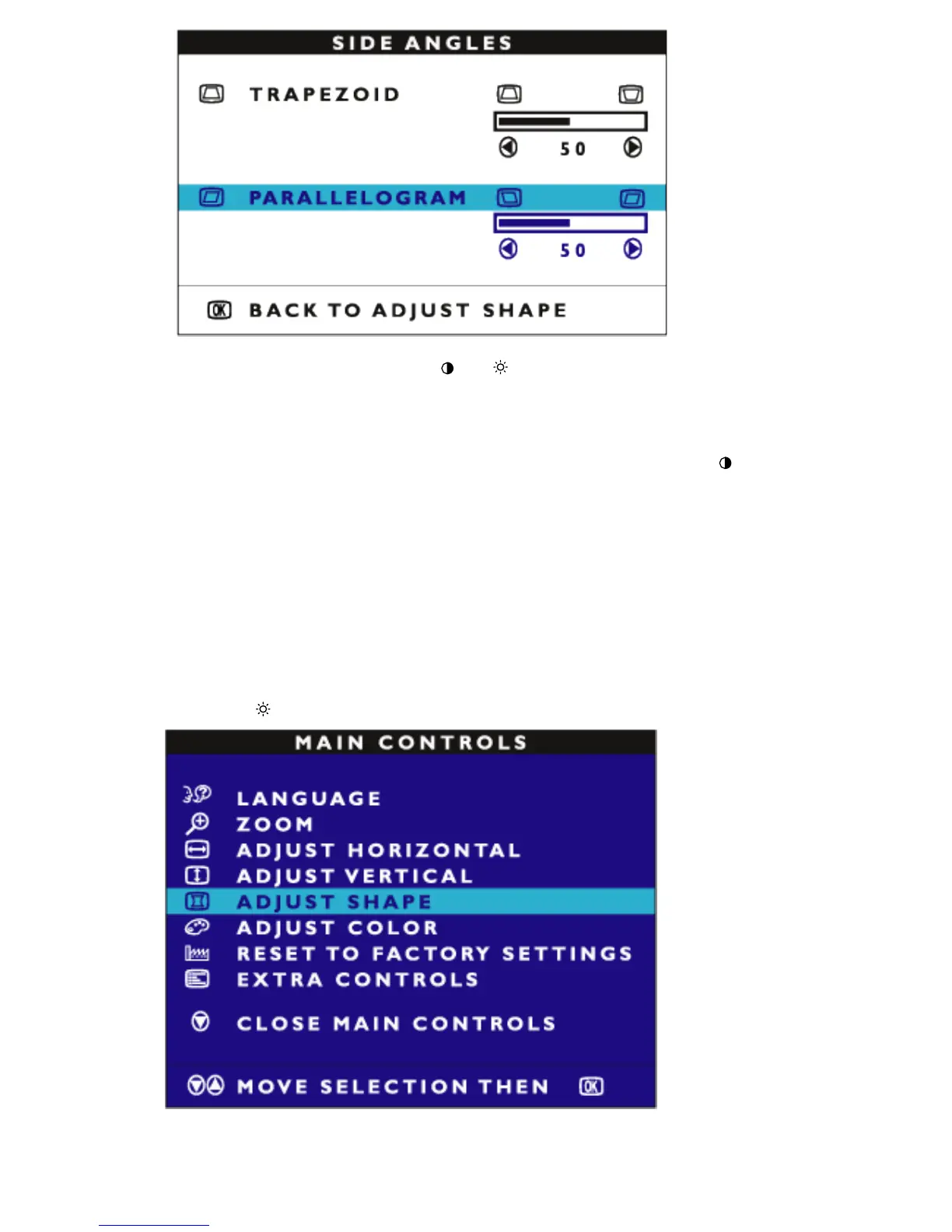 3) Press the MENU button. The ADJUST SHAPE window appears. ADJUST SIDE CURVE