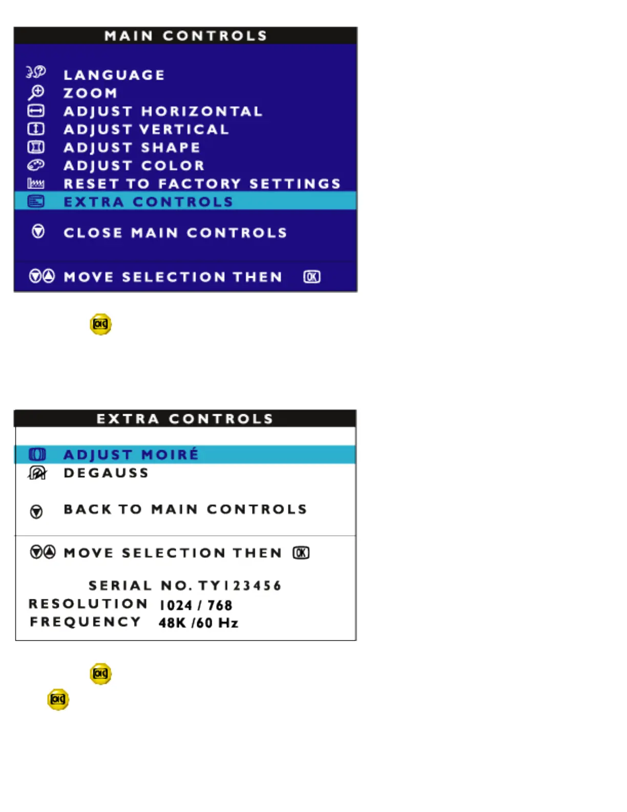 3) Press the button. The EXTRA CONTROLS window appears. ADJUST MOIRE will be