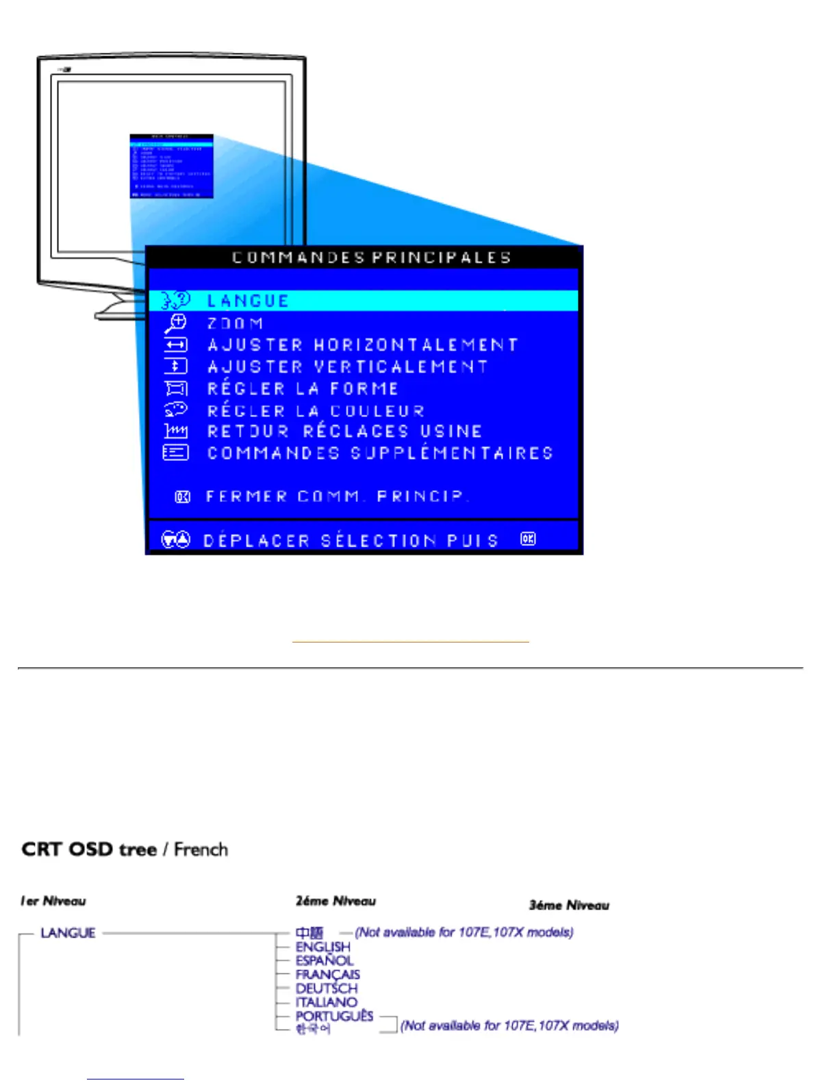 Une vue d'ensemble de la structure de l'affichage sur écran (OSD) est présentée ci-dessous. Vous pouvez