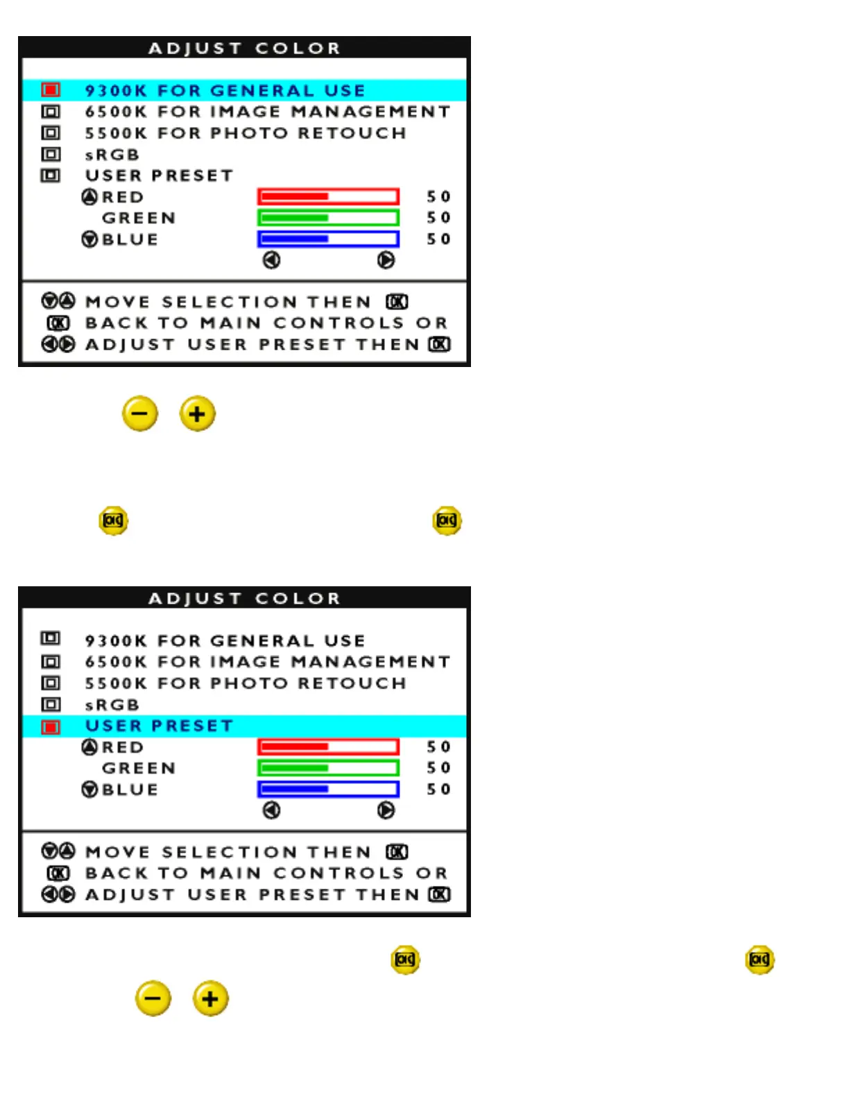 4) Press the or button to highlight 9300K for GENERAL USE, 6500K for IMAGE