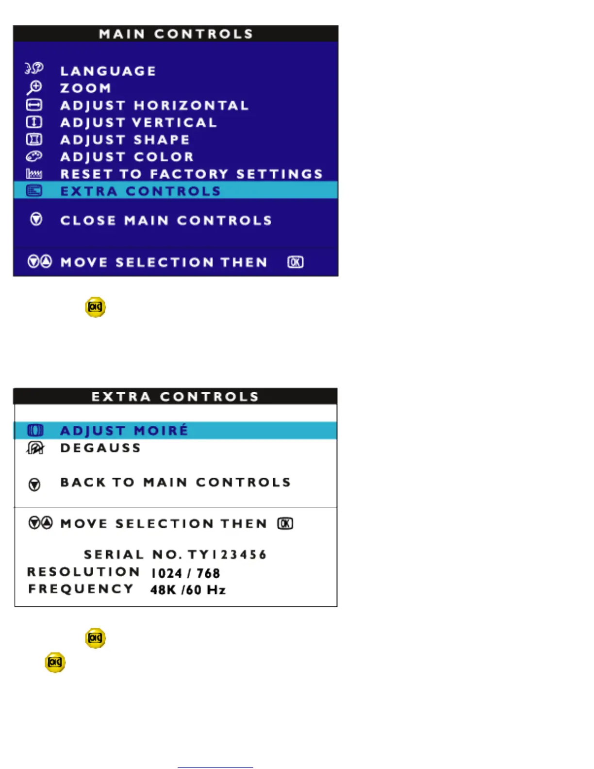 3) Press the button. The EXTRA CONTROLS window appears. ADJUST MOIRE will be
