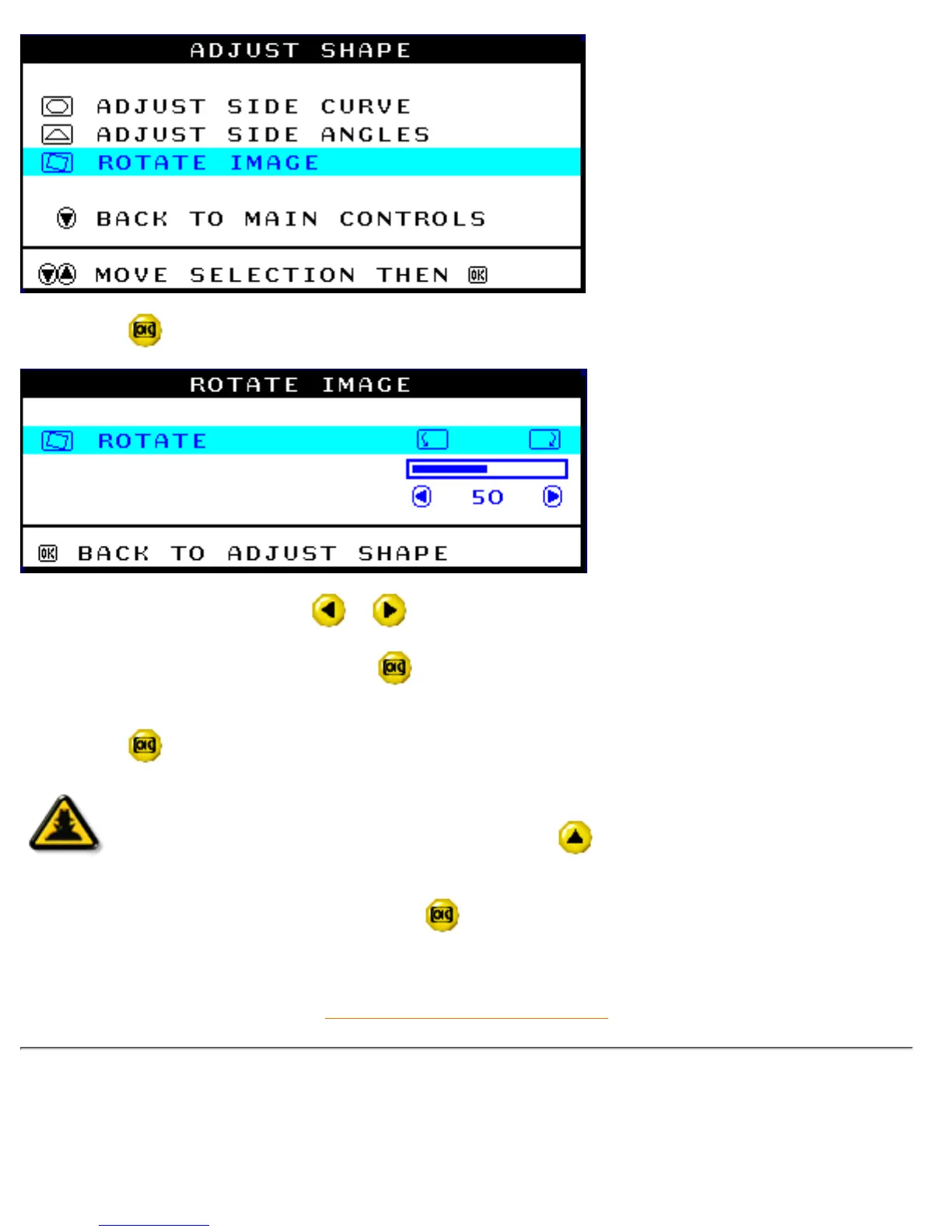 5) Press the button. The ROTATE IMAGE window appears. ROTATE should be highlighted.