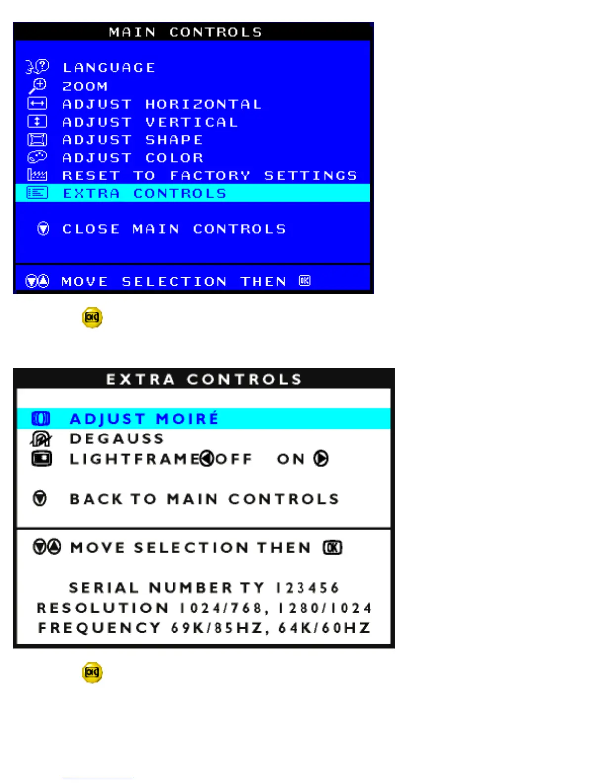 3) Press the button. The EXTRA CONTROLS window appears. ADJUST MOIRE will be highlighted.