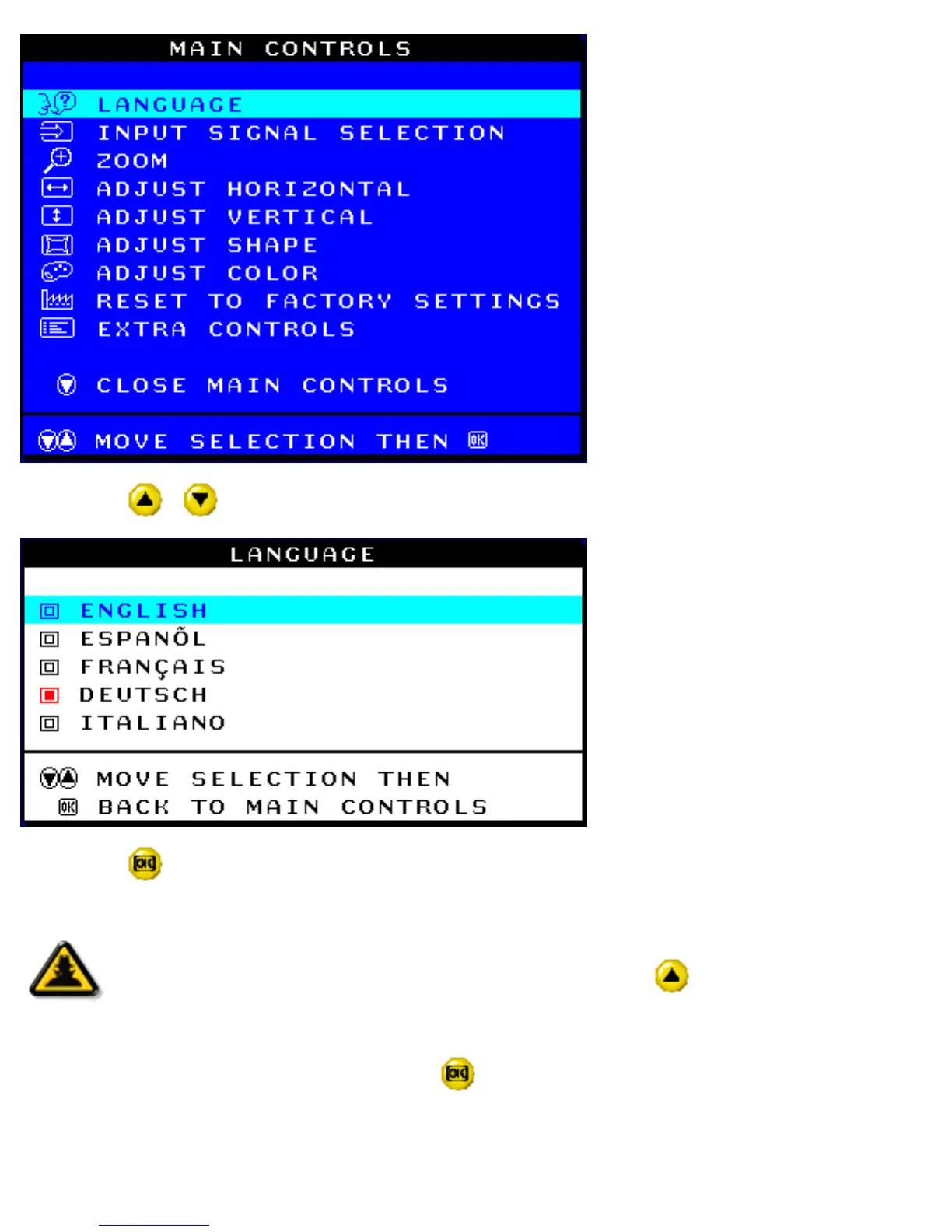 4) Press the button to confirm your selection and return to MAIN CONTROLS window. CLOSE MAIN