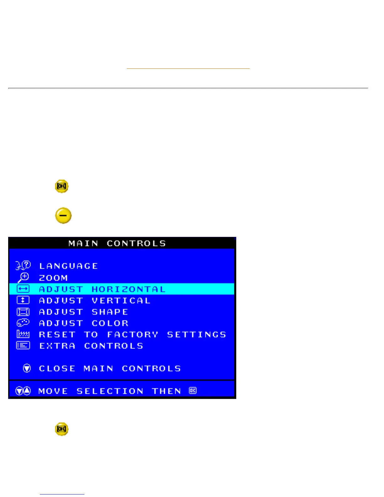 HORIZONTAL expands or controls the image on your screen, pushing it out toward the left and