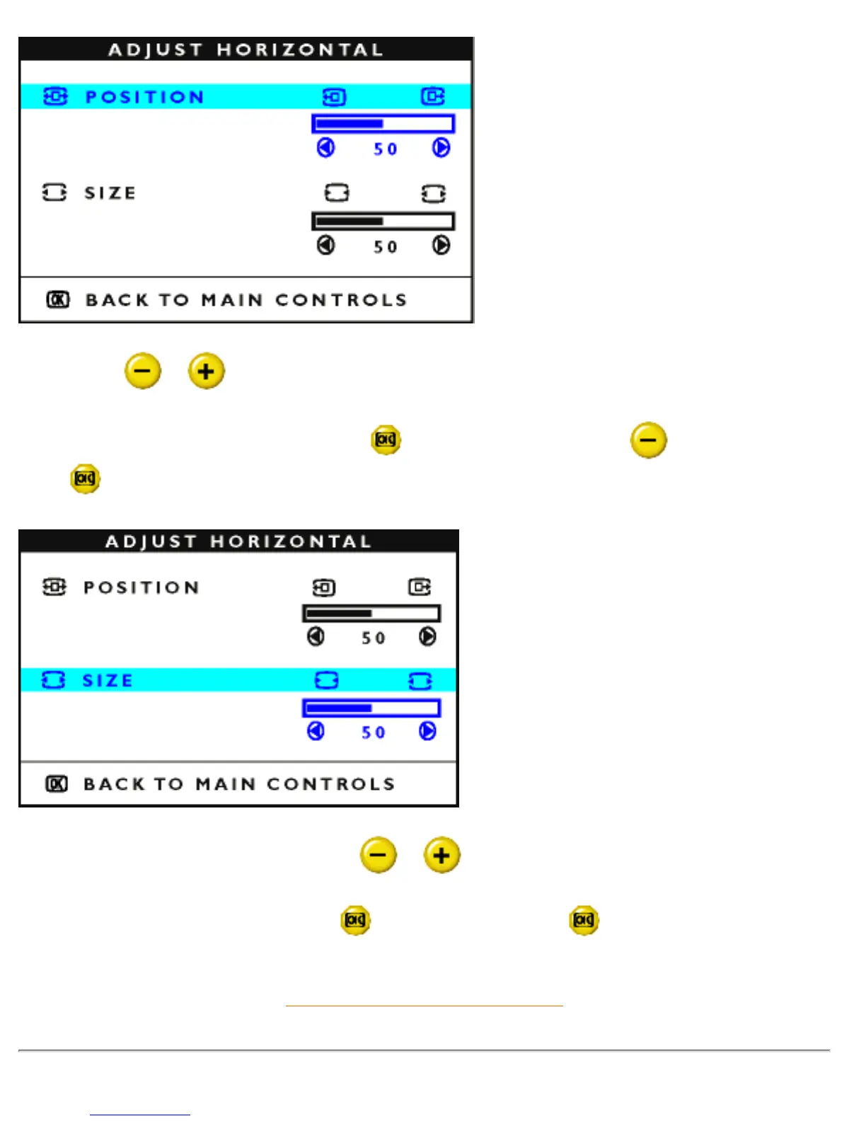 6) To adjust the horizontal size, press the or button.
