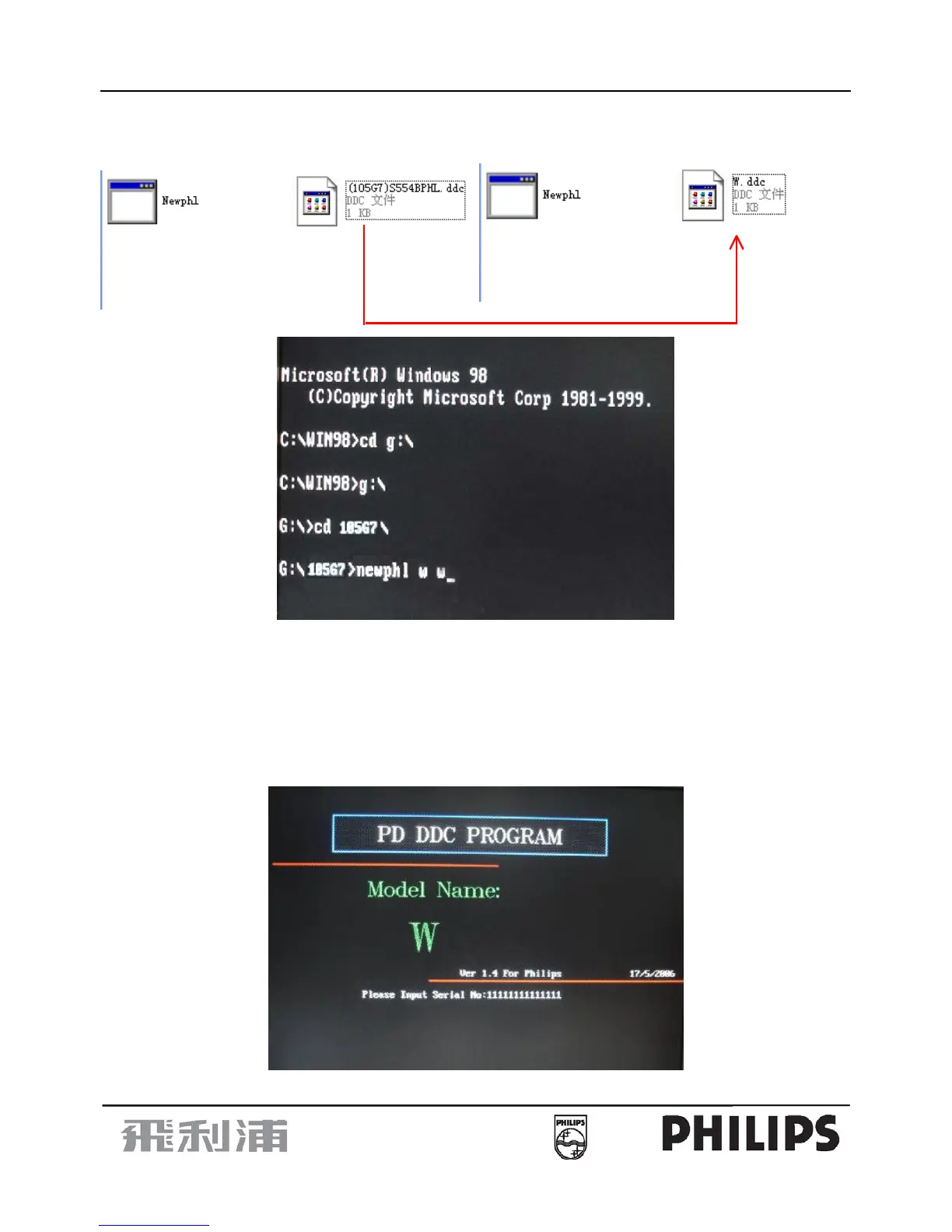 Step 1: Put the “Newphl.exe” and “(105G7) S554BPHL.ddc” to a special folder, such as 105G7. And rename the