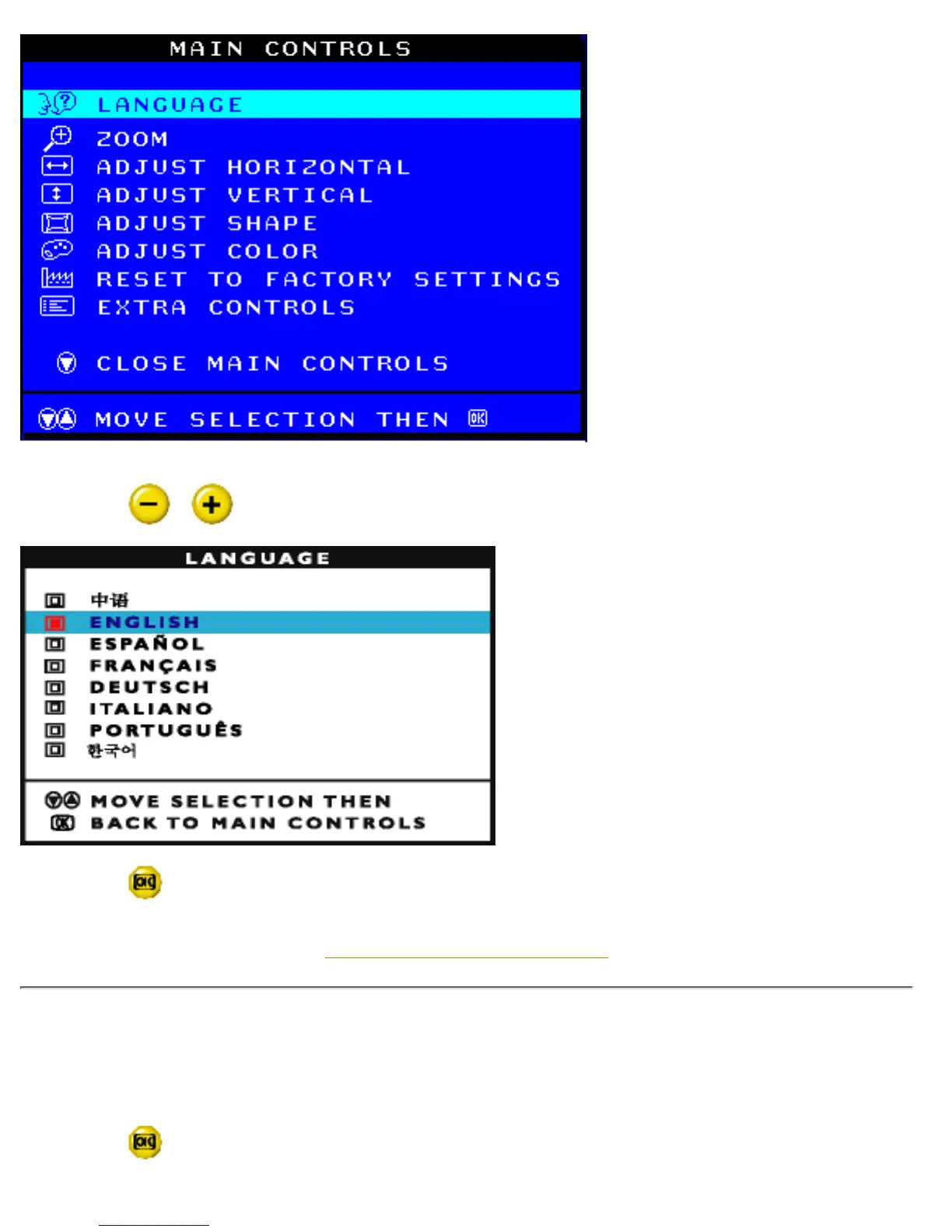 1) Press the button on the monitor. The MAIN CONTROLS window appears.