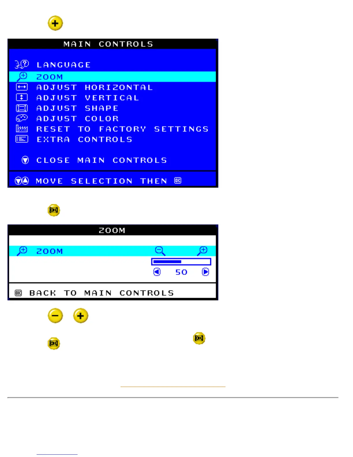 button to confirm your selection and Press again return to the MAIN CONTROLS